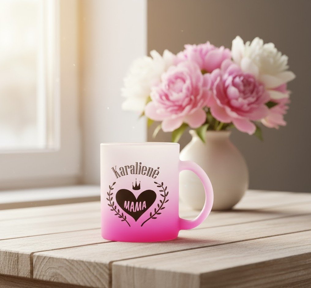 Stiklinis matinis puodelis mamai „Karalienė mama”